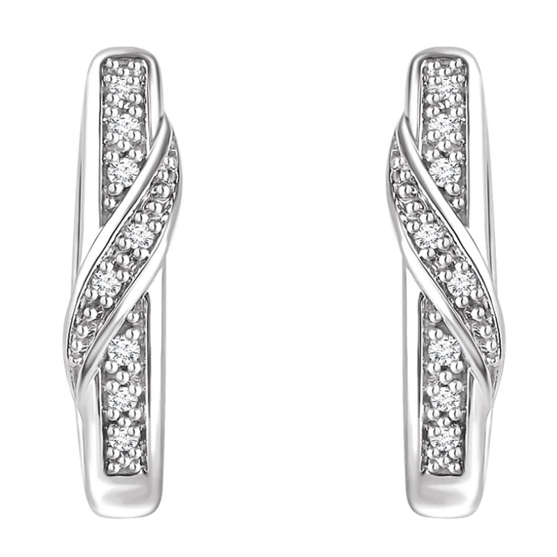 14K White Gold .05 CTW Natural Diamond Hoop Earrings. Can be customized to fit any stone and in any material. Engraving available. Please contact us for custom orders.