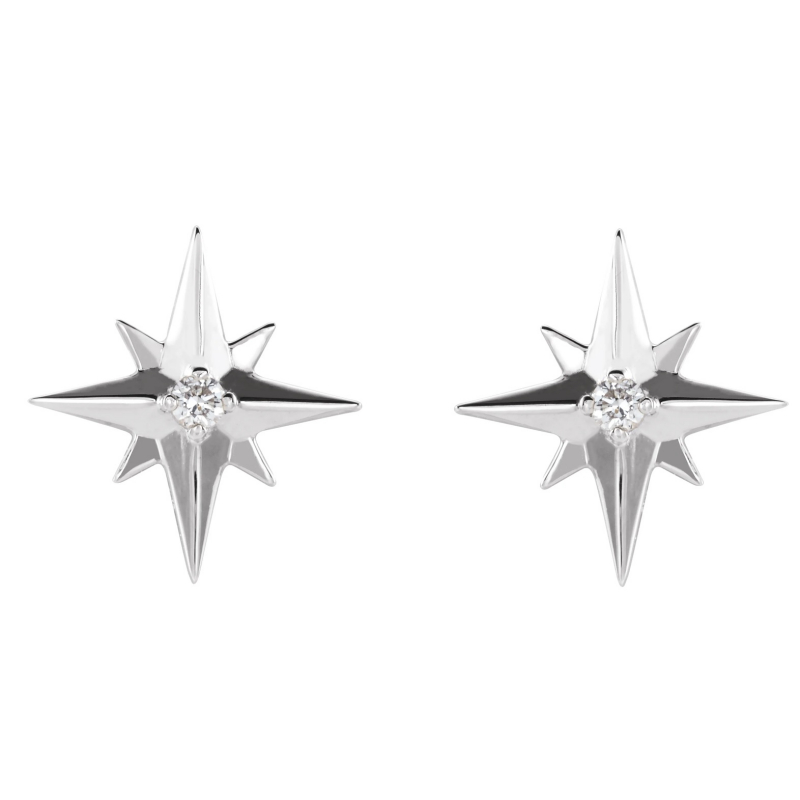 Platinum .03 CTW Natural Diamond Star Earrings, with 1.5 Mm Round Stone(s). Can be customized to fit any stone and in any material. Engraving available. Please contact us for custom orders.