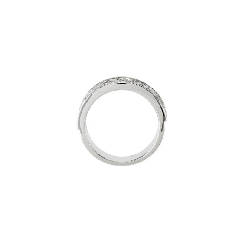 14K White Gold Diamond Anniversary Band, equal to 1/2 carats total weight. Can be customized to fit any stone and in any material. Engraving available. Please contact us for custom orders.