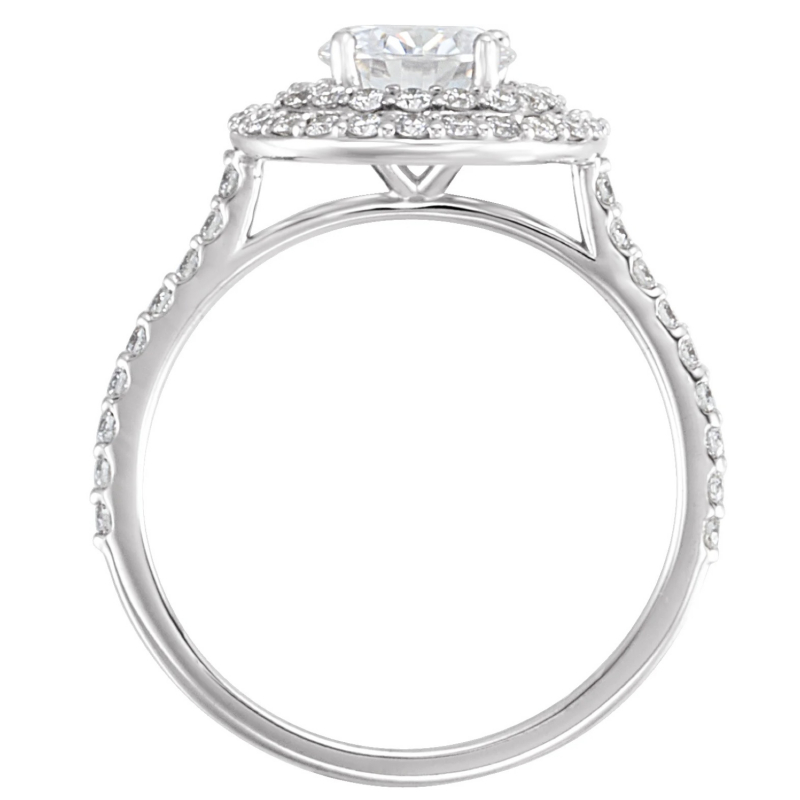 14K White Gold Forever One Lab-Grown Moissanite And 5/8 CTW Diamond Ring, with 6.5 Mm Round Stone(s). Can be customized to fit any stone and in any material. Engraving available. Please contact us for custom orders.