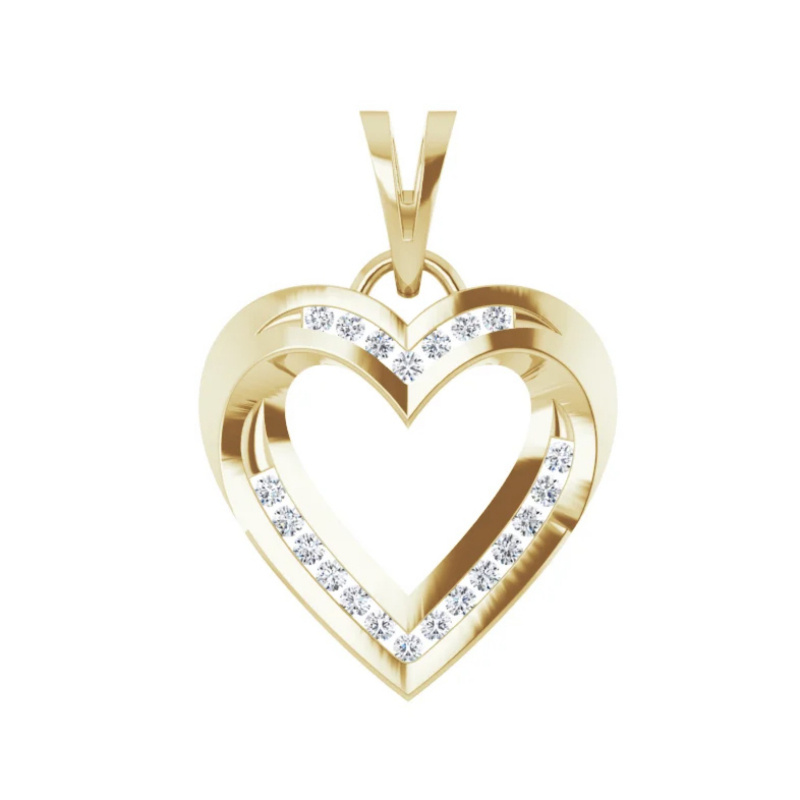 14K Yellow Gold Diamond Heart Pendant, equal to 1/4 carats total weight. Can be customized to fit any stone and in any material. Engraving available. Please contact us for custom orders.