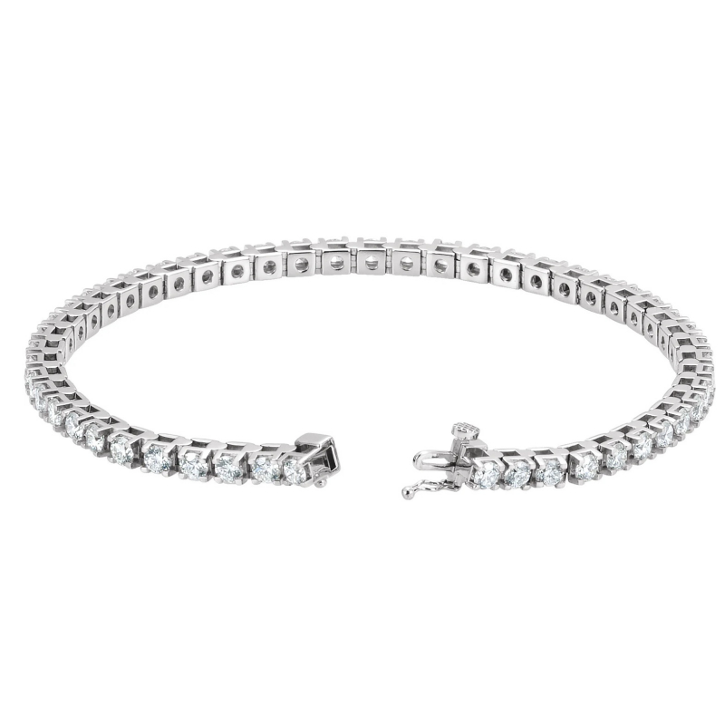 Platinum Diamond Tennis Bracelet, equal to 5 carats total weight. Can be customized to fit any stone and in any material. Engraving available. Please contact us for custom orders.