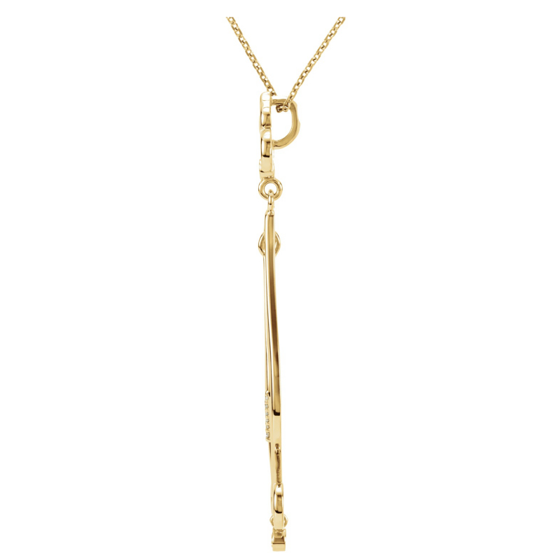 14K Yellow Gold .08 CTW Natural Diamond Necklace, with 2 Mm Round Stone(s). Can be customized to fit any stone and in any material. Engraving available. Please contact us for custom orders.