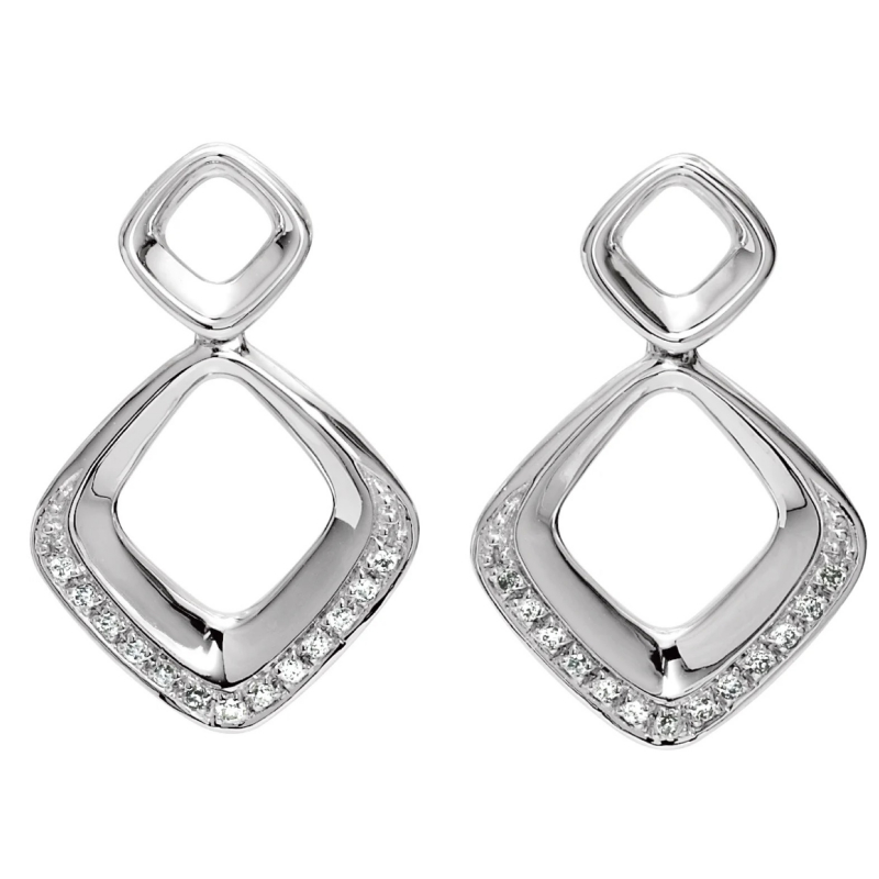 14K White Gold Diamond Earrings. Can be customized to fit any stone and in any material. Engraving available. Please contact us for custom orders.
