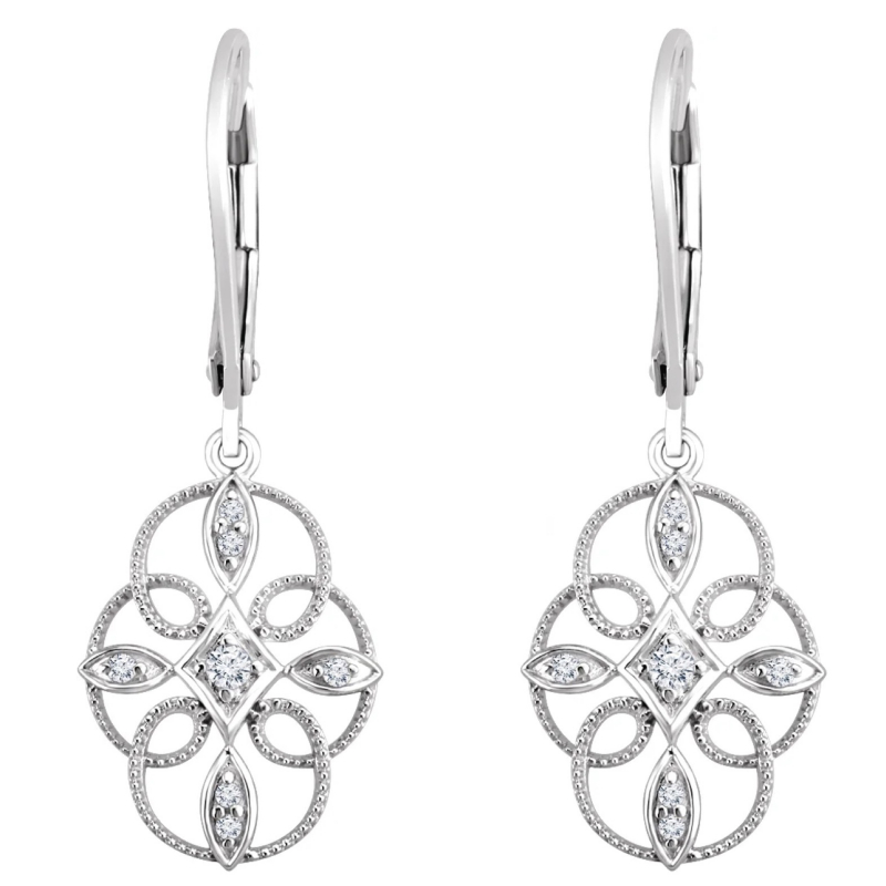 14K White Gold 1/10 CTW Diamond Granulated Filigree Earrings. Can be customized to fit any stone and in any material. Engraving available. Please contact us for custom orders.