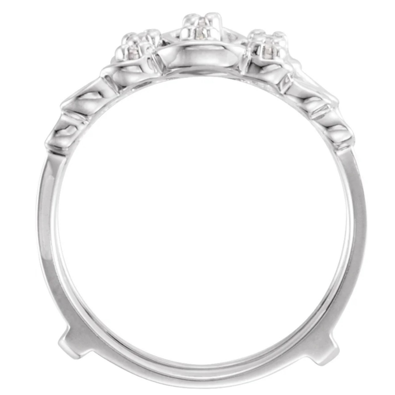 14K Yellow Gold Ring Guard, with 1.7 Mm Round Stone(s), equal to 1/8 carats total weight. Can be customized to fit any stone and in any material. Engraving available. Please contact us for custom orders.