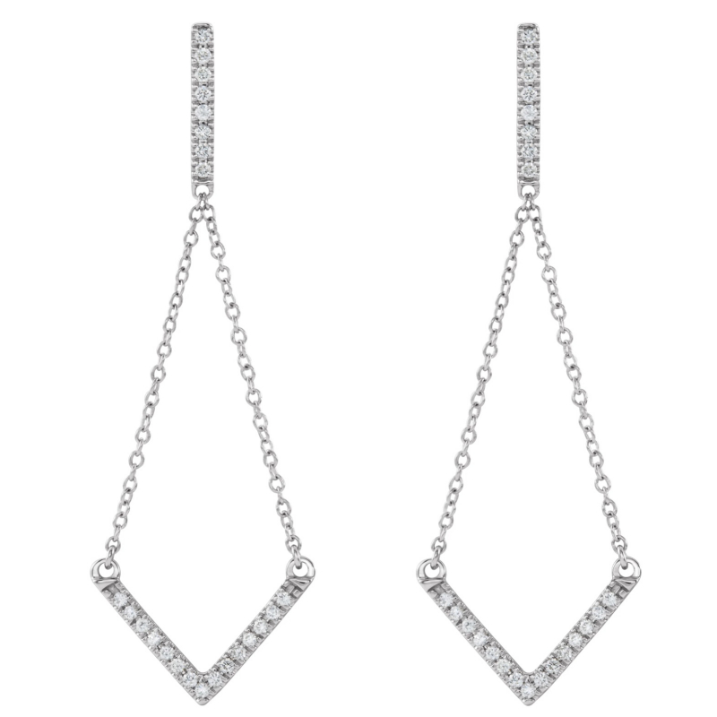 14K Yellow Gold 1/4 CTW Natural Diamond V Earrings With Backs. Can be customized to fit any stone and in any material. Engraving available. Please contact us for custom orders.